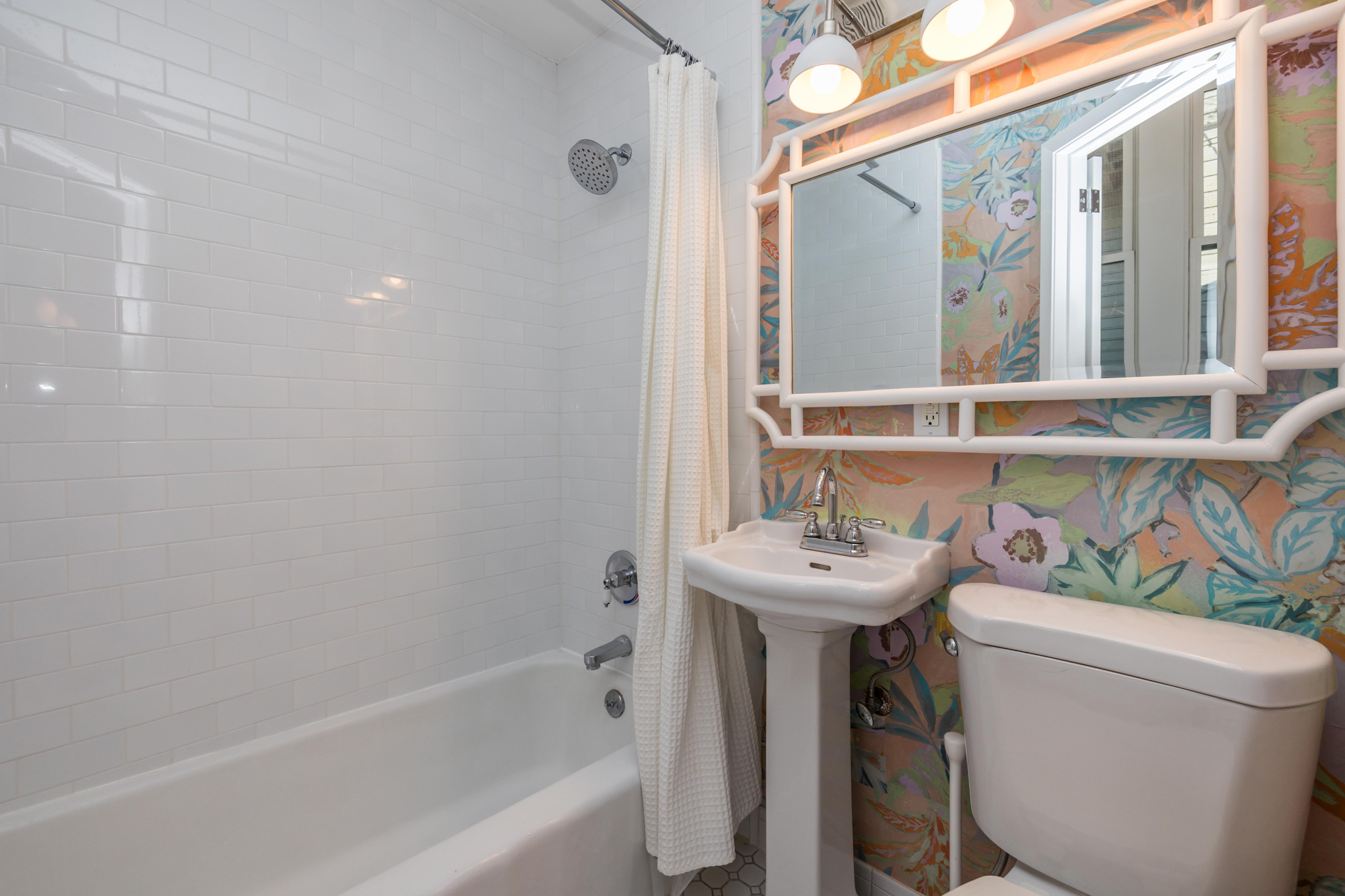 The open-concept living and dining area centers around a cozy fireplace, perfect for entertaining or relaxing. A chef’s kitchen awaits with stainless steel appliances, quartz countertops, a built-in wine rack, and sleek custom cabinetry. Each of the colorful, designer bathrooms features high-end finishes for a spa-like touch.