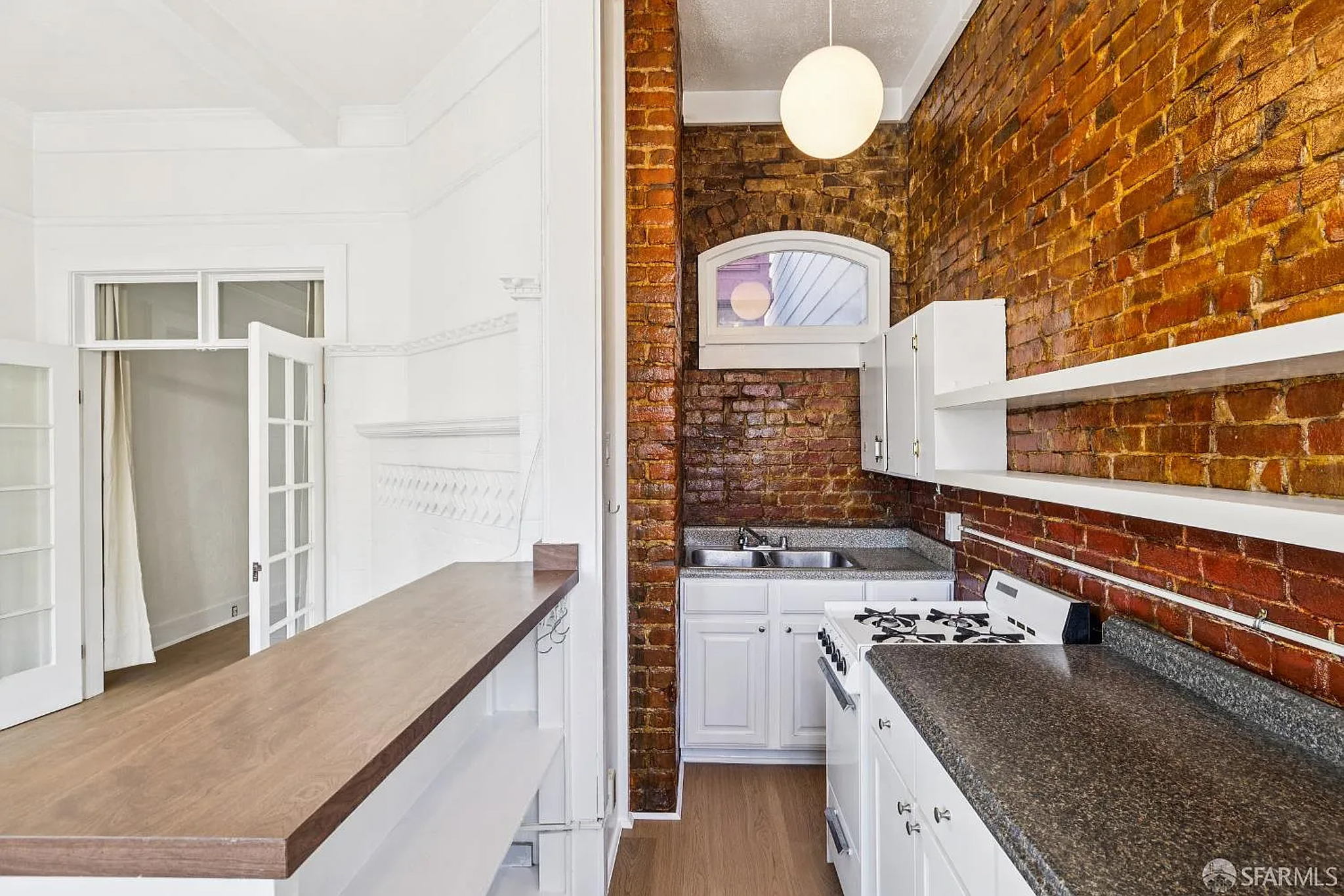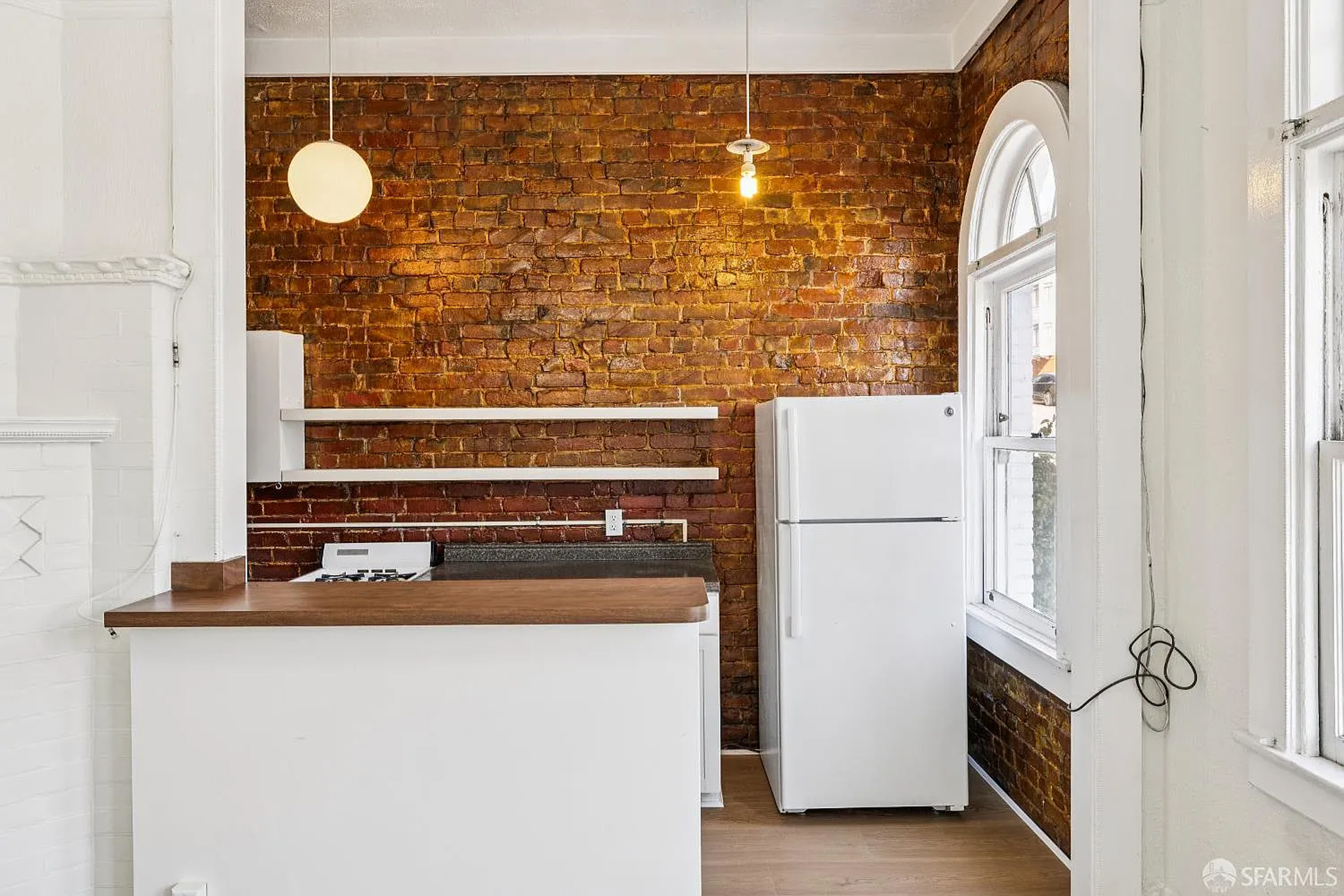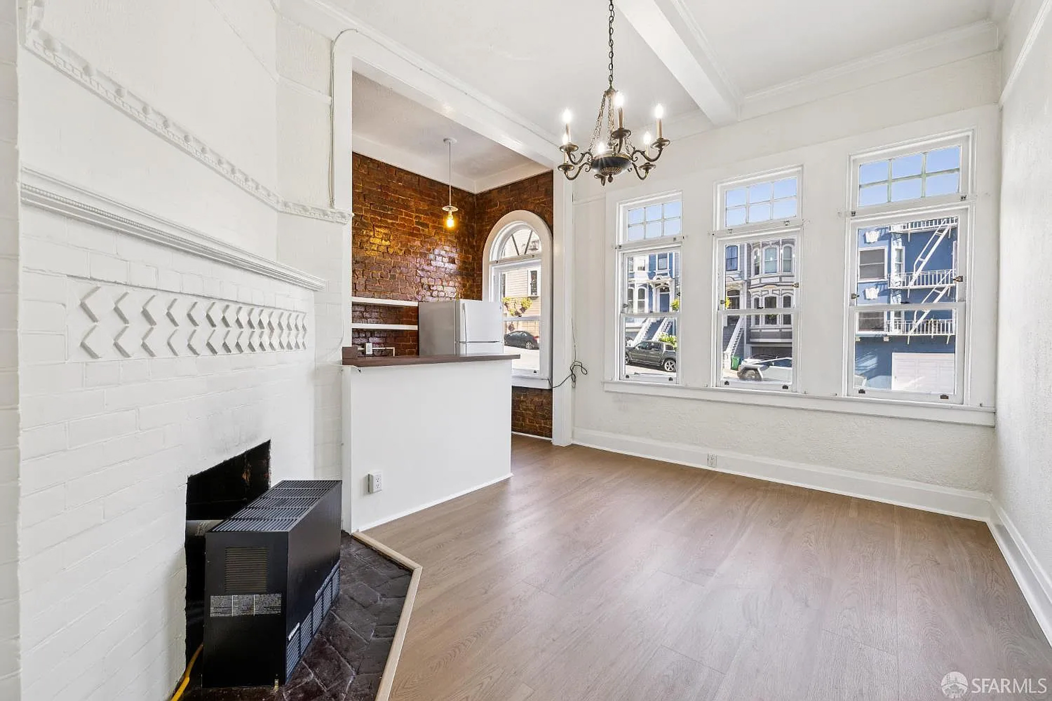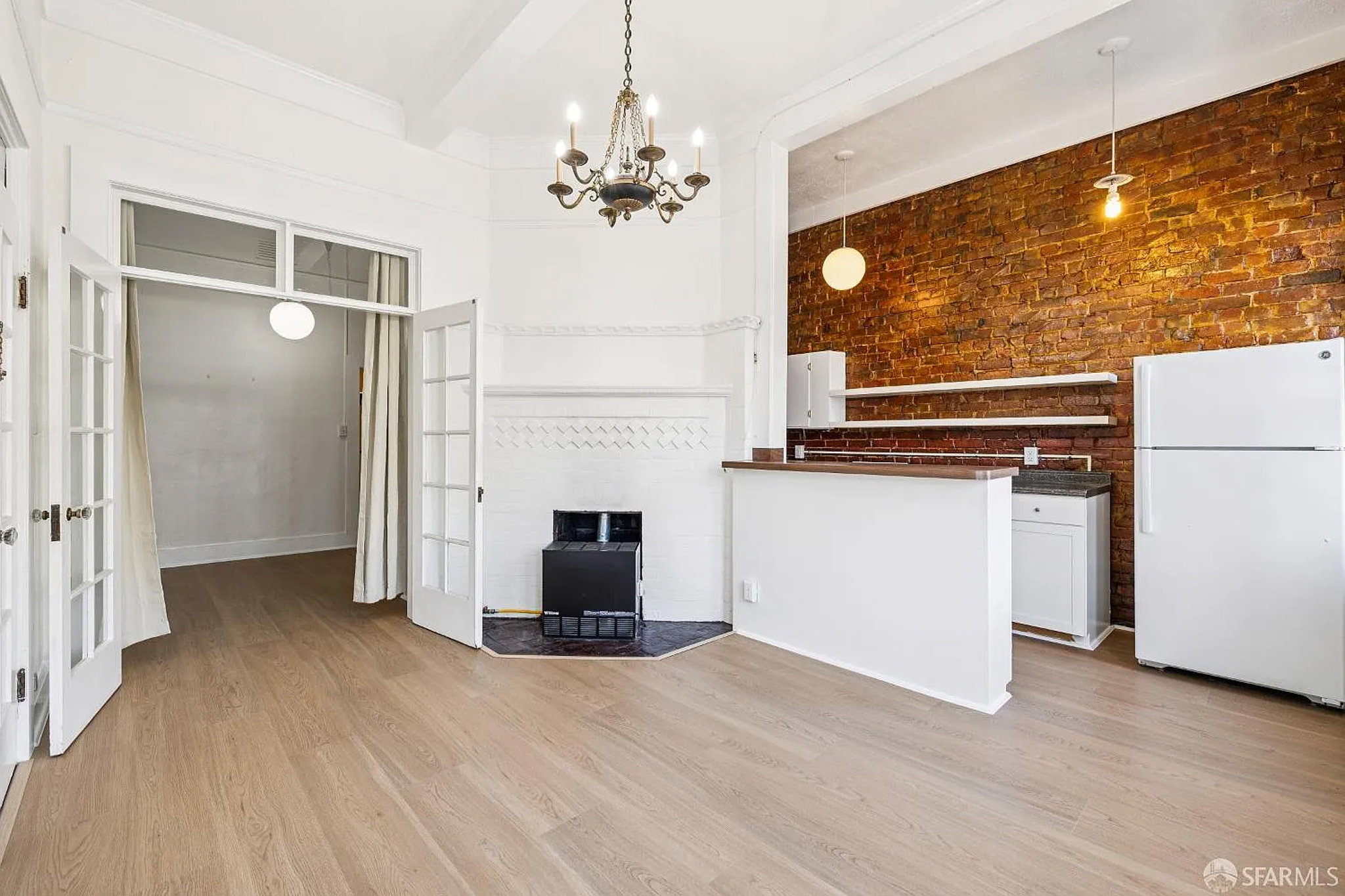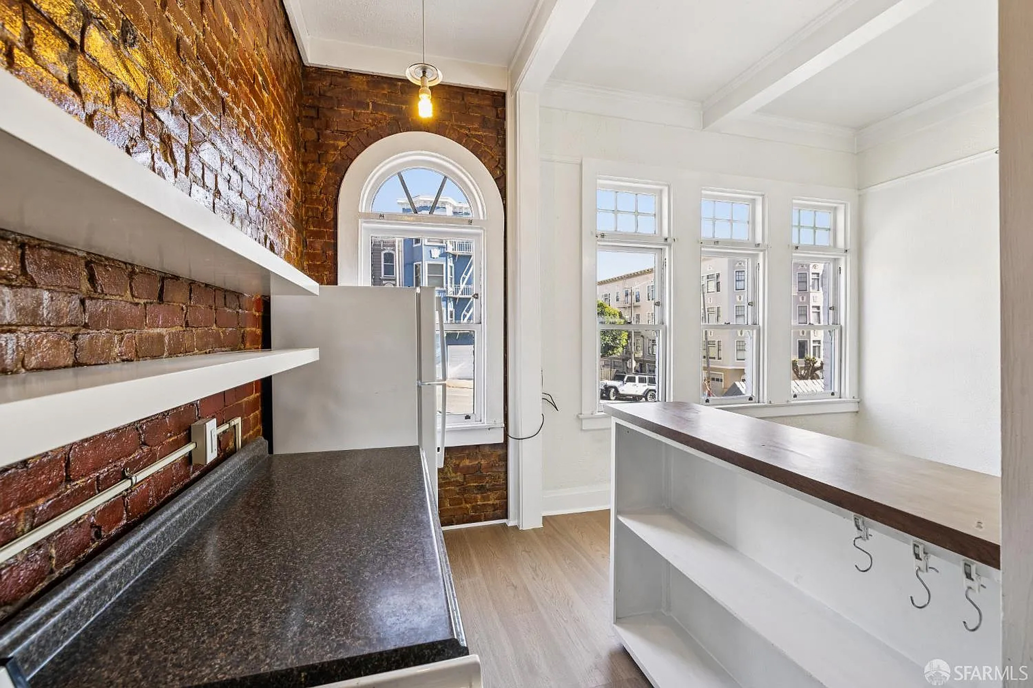 Welcome home to this sunlit 1-bedroom apartment that blends classic San Francisco character with modern updates. The standout exposed brick kitchen wall, chandelier lighting, and gas stove bring warmth and personality to this inviting space.